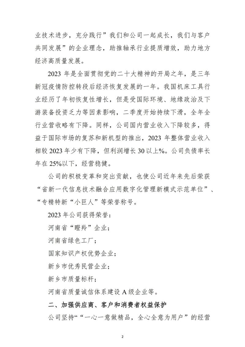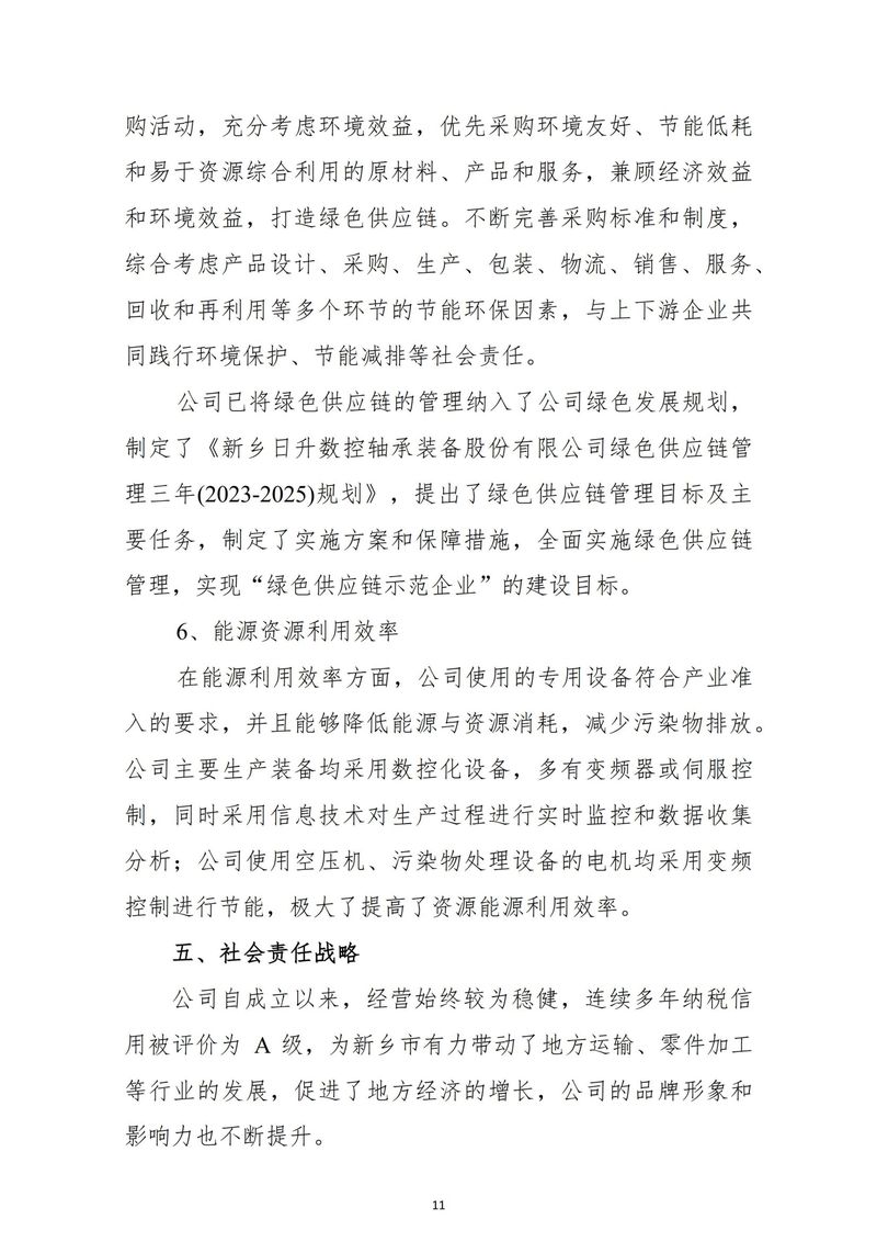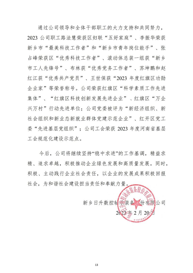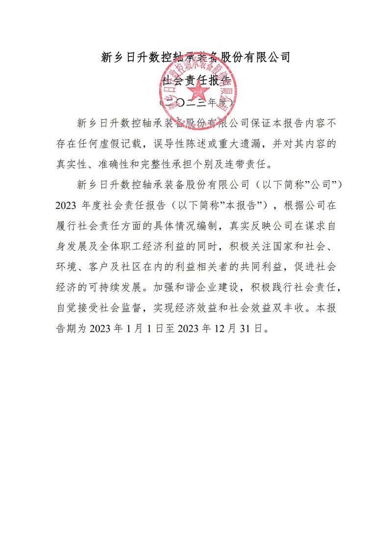 新鄉日升數控軸承裝備股份有限公司社會責任報告-2023
