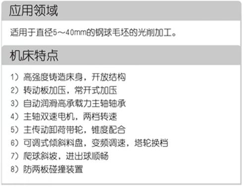 機床裝有兩塊經過淬火的合金鑄鐵光球板,當球坯通過球板中的同心圓弧溝槽時,在一定的壓力下,首先由于擠壓作用將毛坯的環帶去掉,其次由于板溝與毛坯球相對滾動產生類似磨削的作用使球坯逐漸獲得一定的幾何精度和尺寸公差。